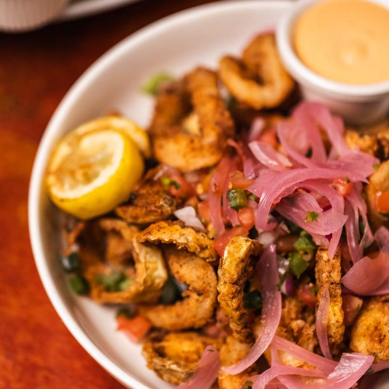2 per order, poblano sauce, mango, avocado, cucumbers, red onions, citrus, and cilantro.
