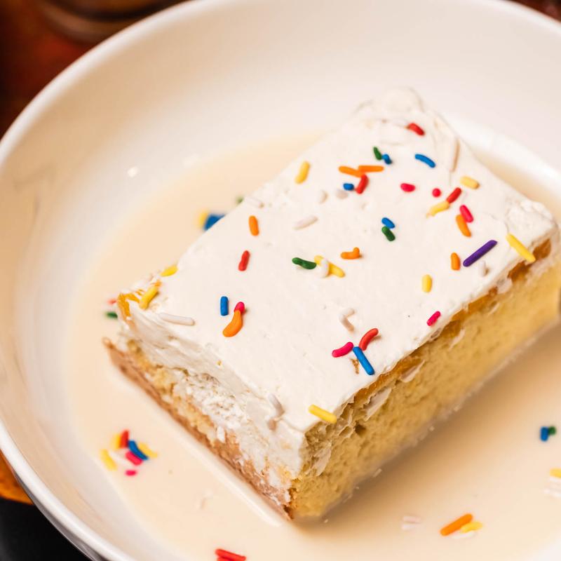 Caramel filling, whipped cream, chocolate syrup, and dulce de leche.